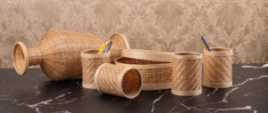 - Handwoven bamboo desk organizer set